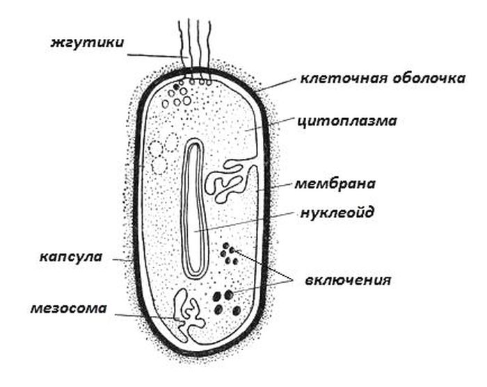 Внешняя мембрана гладкая, а внутренняя имеет кристы. Кольцевая ДНК и РНК и рибосомы 70S.